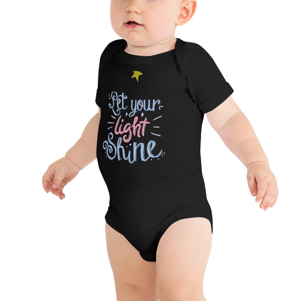 Dress your baby to impress and let their light shine in this adorable 100% cotton one piece! Featuring a comfortable envelope neckline and three snap leg closures, changing your little one becomes a breeze. The beautiful print is bound to get your baby all happy and giggling, spreading joy wherever they go. Made from soft and breathable ring-spun combed cotton, this outfit ensures your baby's comfort while adding a touch of style to their wardrobe. Let your little one's personality shine bright in this delightful baby one piece. Order now and witness their happiness light up the world!