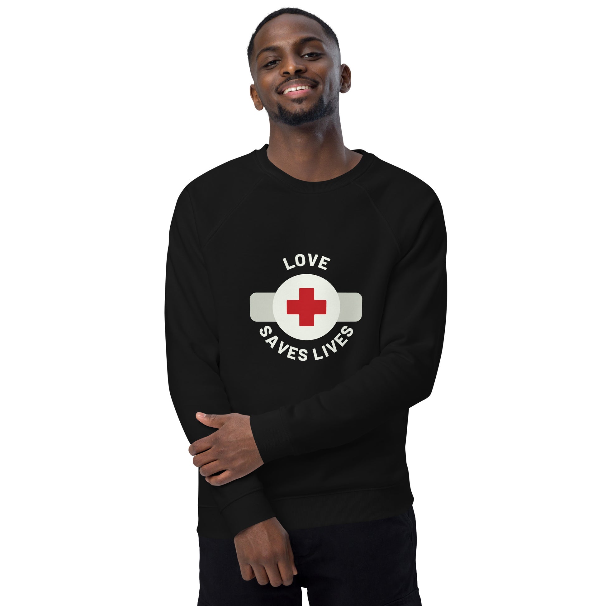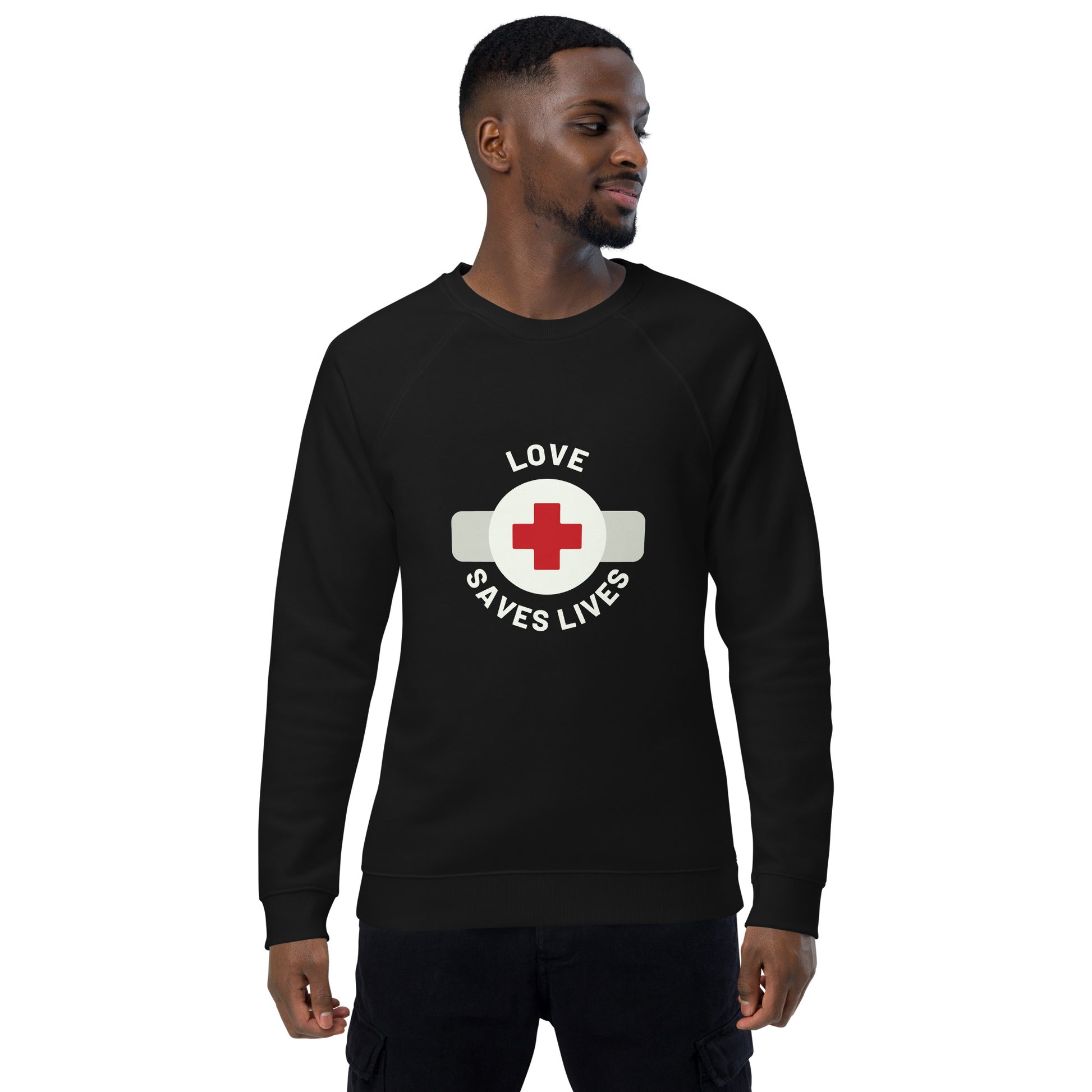 Embrace comfort and style simultaneously with our "Love Saves Lives" unisex organic raglan sweatshirt. Your to-do list just got more delightful as you check off feeling comfy and looking effortlessly stylish. Crafted with care, this sweatshirt features a brushed fleece lining, providing a cloud-like softness that wraps you in warmth. The 100% cotton exterior ensures a smooth feel on the outside, making it an ideal choice for those working tirelessly in the medical field. Elevate your workwear with a touch of love and functionality.