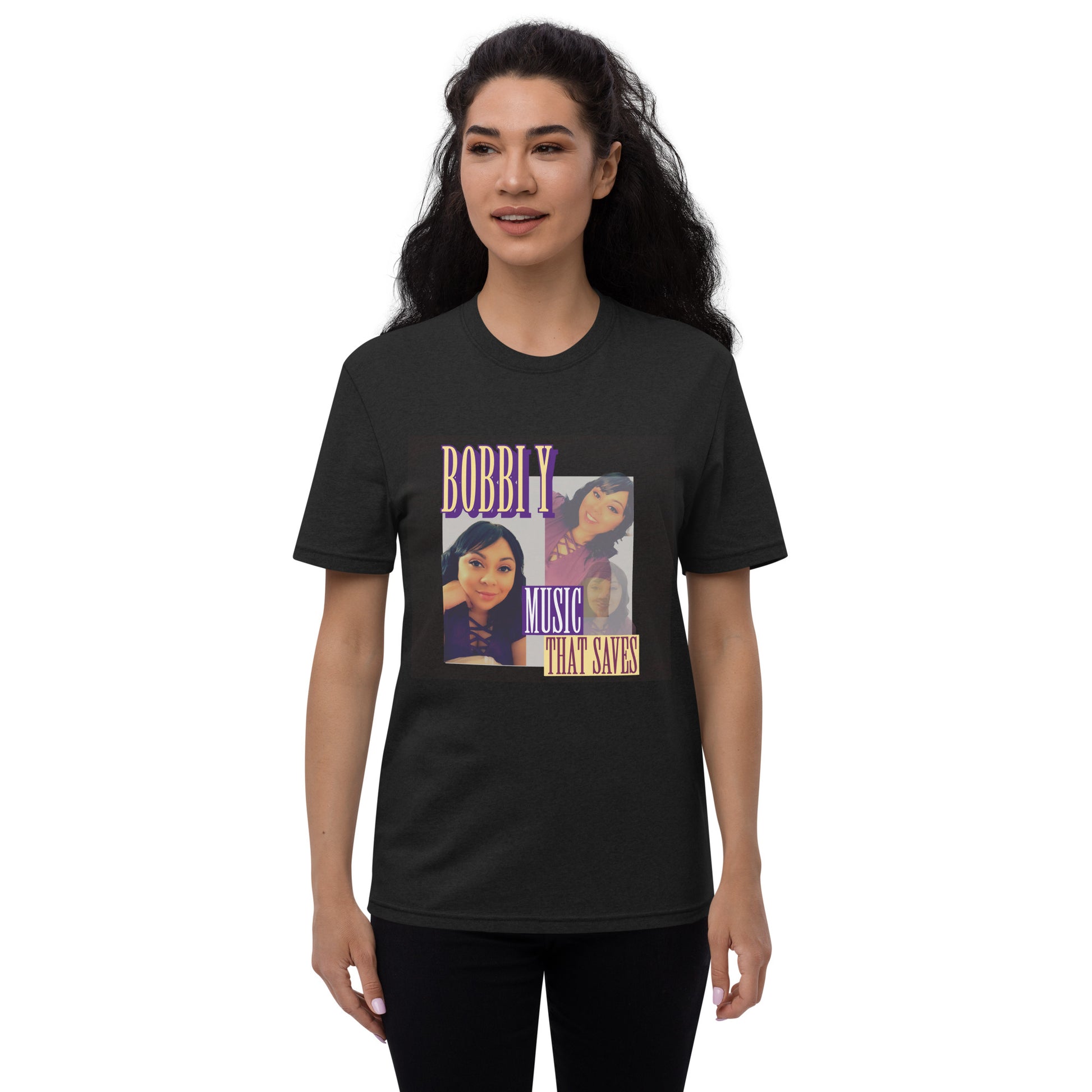Searching for eco-conscious apparel that shares a positive message? It's made from 100% recycled fabric that's never re-dyed, saving energy and water, while also reducing pollutants and carbon emissions. Whether you need a soft and breathable base layer or an eye-catching solo piece, this eco-friendly t-shirt is the choice for you! Not to mention, You are wearing Bobbi Y.